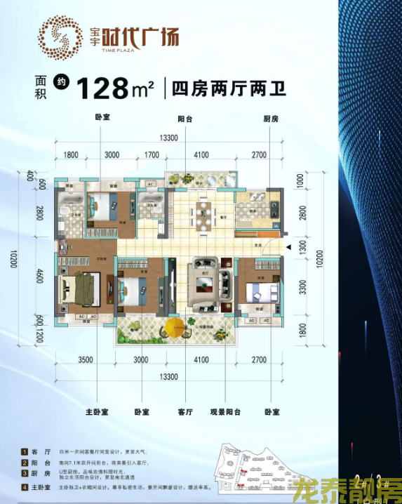 4.1米大开间客厅,承载尊崇生活,承启世家风范。南向6.4米双开间阳台,将美景引入客厅;U型厨房,洗切炒完美结合,品味烟火气中幸福的味道;主卧室舒适套房,尊享私密生活,整开间飘窗设计,赠送座高;阳台+储藏室设计,可做独立书房阳光房,提供更多功能。